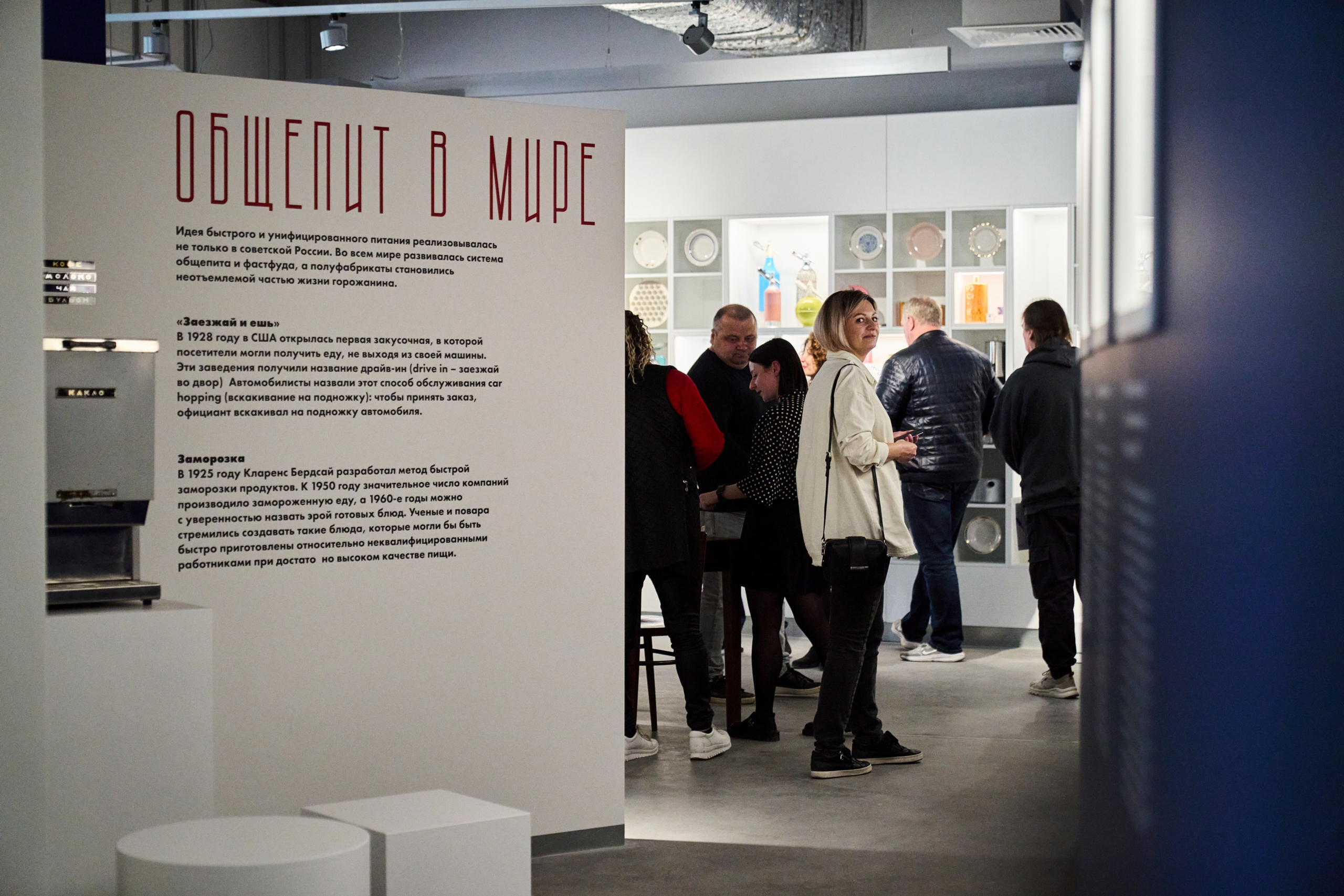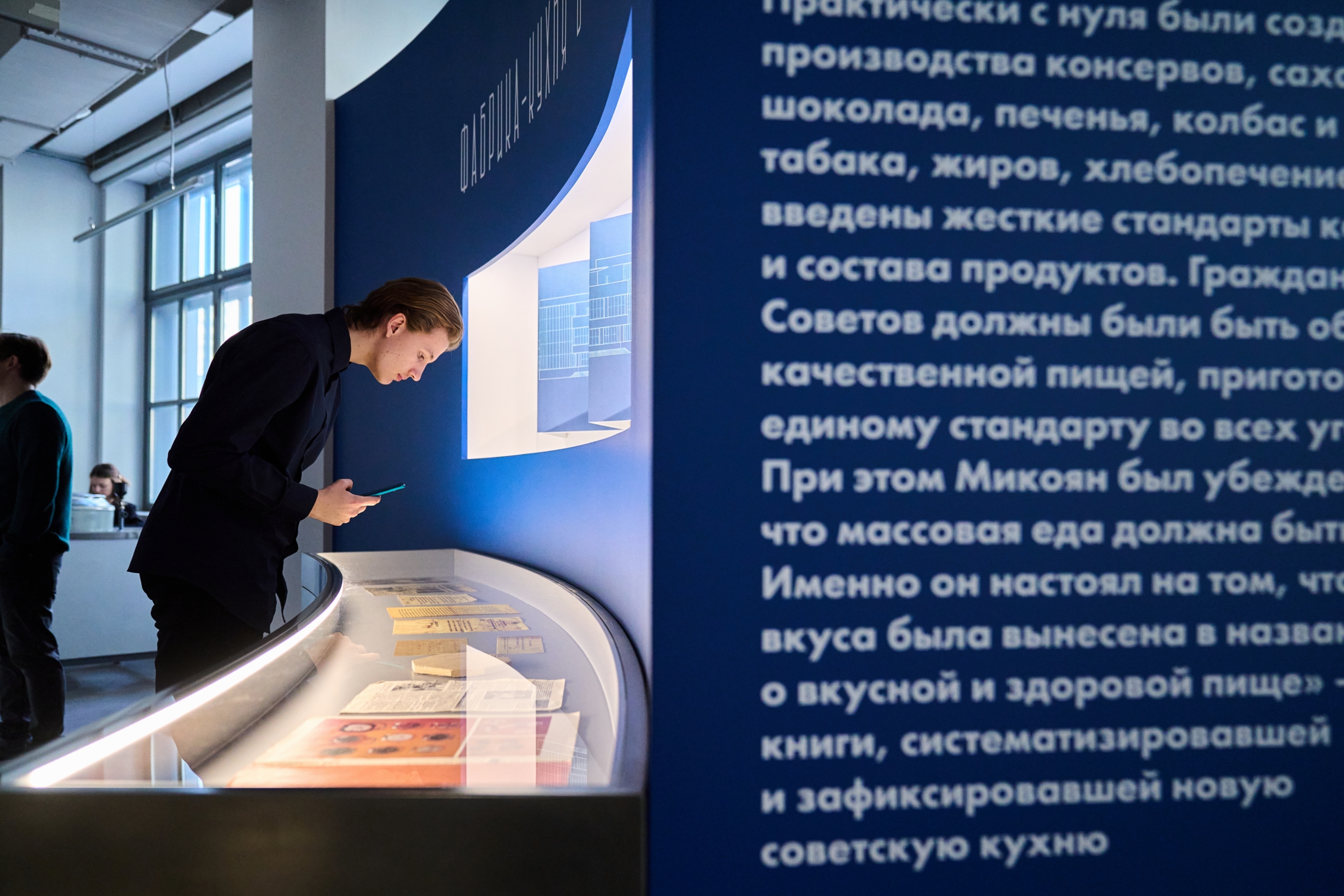 Экспозиция «Музея Фабрики-кухни» рассказывает об истории здания, его архитекторе Екатерине Максимовой, судьбе Фабрики-кухни после открытия и людях, которые с ней связаны. Пройдя символический путь от кухни, через линию раздачи к обеденному залу, посетители увидят артефакты, обнаруженные в ходе реставрации здания, вещи, переданные бывшими сотрудниками, экспонаты из коллекции потомков архитектора Екатерины Максимовой, предметы, связанные с советской кулинарией, и личные воспоминания посетителей и работников Фабрики-кухни. Параллельно с историей здания в экспозиции разворачивается история советского общепита и советской кулинарии в целом: от нарпитовской столовой и «Книги о вкусной и здоровой пище» до 6 квадратных метров кухни в хрущевке.